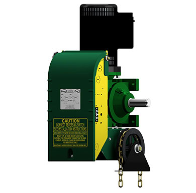 The operator can be wall, hood, or shelf mounted on either side of the door. It incorporates the patented Hoist-a-matic®, a self-engaging chain hoist for manual operation, which simplifies operation and installation.